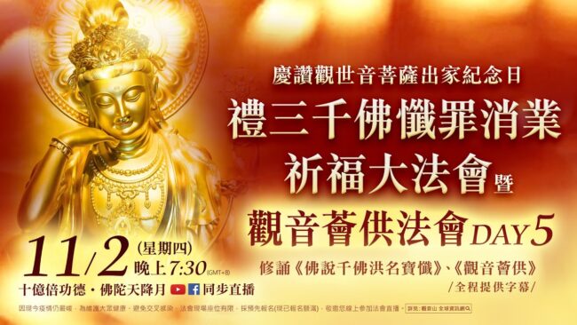 11月2日(四)觀音山LIVE直播 十億倍功德‧佛陀天降月‧觀世音菩薩出家紀念日 禮三千佛懺罪消業祈福大法會 …