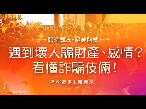 龍德上師:遇到壞人騙財產、感情?看懂詐騙伎倆! 即時聞法, 感情麻煩事, 求財三二事GYS2022/06/06遇到壞人騙財產、感情?看懂詐騙伎倆! 親近善知識非常重要,因為有善知識,我們才能如法學佛修行,看…