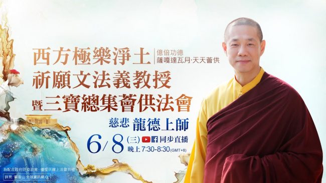 6月8日觀音山LIVE直播 億倍功德─薩嘎達瓦月‧天天薈供 慈悲 龍德上師《西方極樂淨土祈願文》法義教授暨三寶…