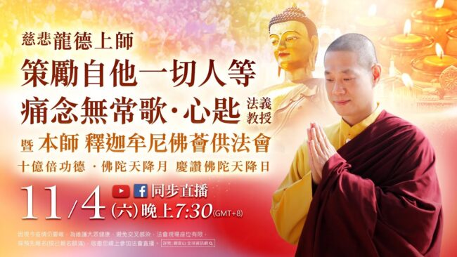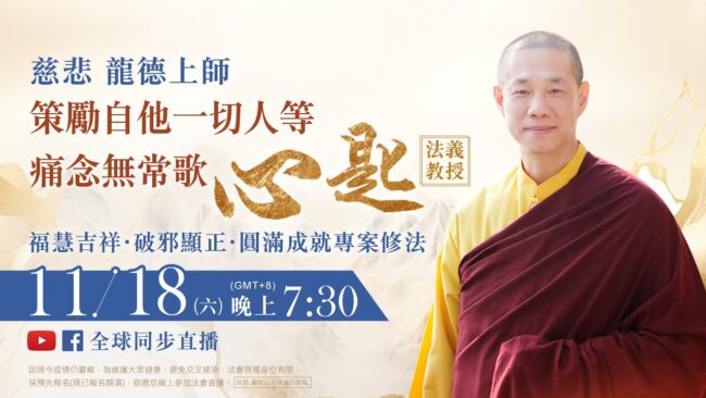11月18日(六)觀音山LIVE直播 | 慈悲 龍德上師《策勵自他一切人等痛念無常歌‧心匙》法義教授 暨 福慧…